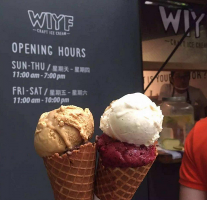很多人可能还对WIYF记忆犹新,它和曝出过期面粉丑闻的面包店Farine ,以及其他四家店铺,都同属一个法国老板,都在2017年初一夜间被查封关停了。 WIYF是2015年底开业的,2016年初,忽然在社交网络上“爆红”,热度持续一整年,最火的时候,客人要排队三小时才能吃上一个冰淇淋,直到被查封前,WIYF 门前也还是每天排队的状态。