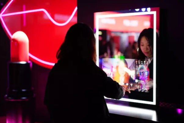 在上海大悦城的天猫快闪店,科莱丽摆了一个增强现实(AR)展示台让消费者对着屏幕看化妆品上脸的效果。店员说:“现在大家都在说新零售,这也是我们品牌方的一次尝试。”
