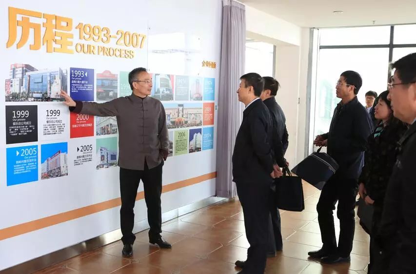 在总部连廊,董事长向来访领导概要介绍了集团发展历程和企业文化建设,介绍了盘锦兴隆大厦、铁岭兴隆百货、沈阳兴隆大都汇、抚顺兴隆摩尔世界等商场的经营状况和业态组合。