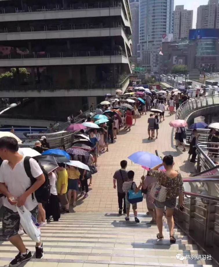 现场堪比明星路演现场,人山人海,队伍一直排到了外面的大桥。