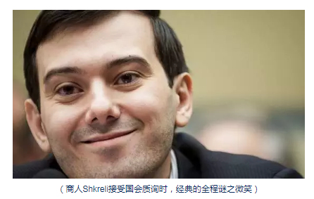 在金融领域,榜样的力量是无穷的,既然VRX打开了"潘多拉的魔盒",自然就有人跟进,集大成者就是:图灵制药,他们将一款罕见的寄生虫感染药物Daraprim涨价5500%,其CEO Martin Shkreli给出的回应则更为直接:"我是商人,只对钱负责。" 在面对一次国会质询中,Shkreli行使美国宪法赋予的第五项权利,以微笑的表情,全程一字未语,这让参会人员怒火中烧,但也无可奈何: