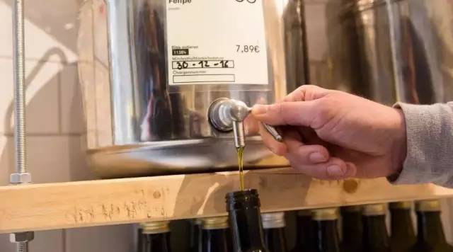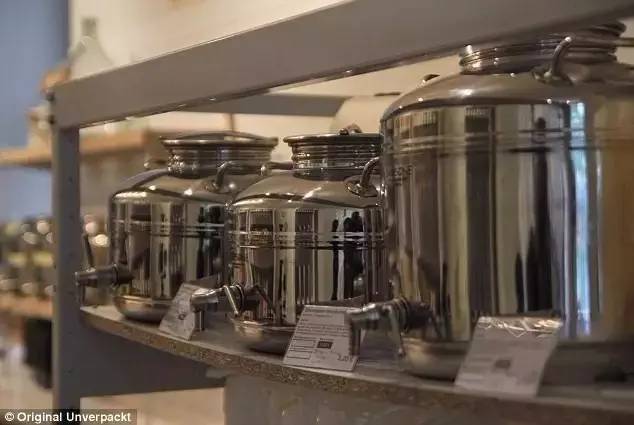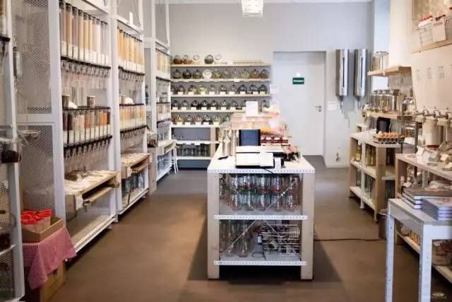 这家超市里不出售任何一次性的盒子、袋子、罐子或其它容器,只提供散装谷物、饮品等,顾客需要携带自备容器来购物,自备的包装盒先自行称重贴标签,最后结帐时,再将其重量扣除。