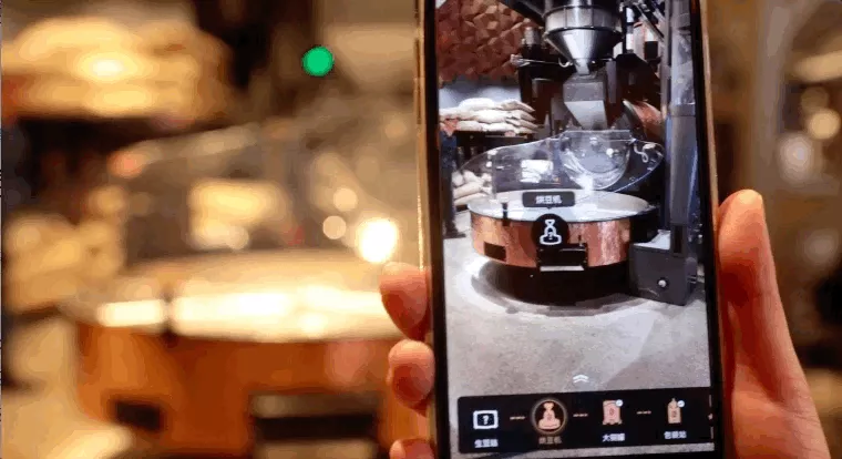 当你走进上海这家甄选烘焙工坊里,你拿出手机打开淘宝的“扫一扫”,即可调出“隐藏”的菜单,利用阿里巴巴人工智能实验室AI Labs联合星巴克开发的一套AR(增强现实)方案,可以直接在手机上观看星巴克咖啡烘焙、生产及煮制的全过程。