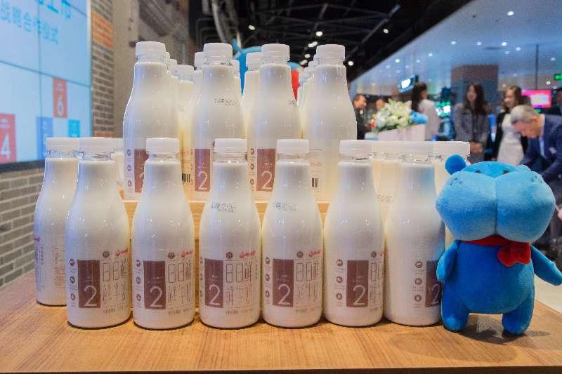 其次,消费者对新鲜牛奶的要求很苛刻。比如很多人买牛奶,会拿冷藏柜最里面的,因为里面的日期最新鲜。但目前鲜牛奶的保质期在7天至14天,所以经常能看到不同上市日期的牛奶在同一天的冷藏柜里。而且对一家三口来说,1000毫升左右的包装规格大了一些,一天喝不完。“侯毅说,“日日鲜”牛奶就是要解决这些“痛点”:在价格上,通过与生产商直接联手,改变多级分销机制:“第一没有中间流通环节,第二盒马鲜生绝对不收取进场费、促销费等灰色费用,最后的零售价是出厂价加上合理的毛利,这就意味着我们能为消费者提供最合理的价格。在产品设计上,尝试750毫升这一新规格,“刚好是两大杯、一小杯,一家三口一天喝完。”