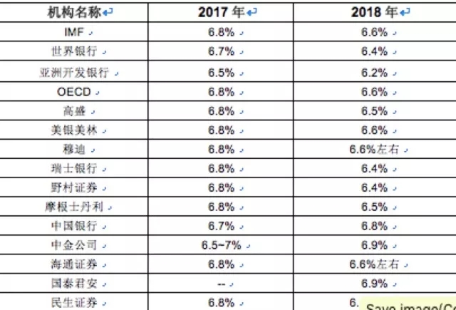 表1:国内外主要机构对中国2017、2018经济增速预测