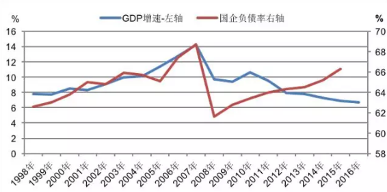 图9:GDP增速与国企负债率