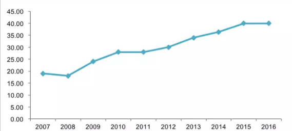 图5:2007-2016年企业杠杆率(%)