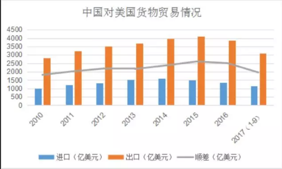图16:中美货物贸易情况(2010-2017.1-9)