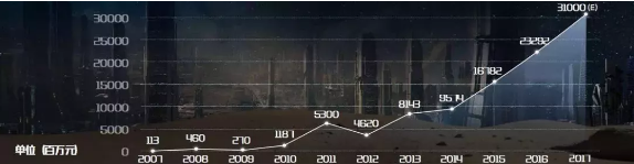 2002-2017年这15年间,中国对外投资额增加了将近20倍(18倍多一点),很多人大规模举债去海外买楼、买海滩、买酒店、买电影院、买足球俱乐部,这些都是非标资产,都是泡沫。