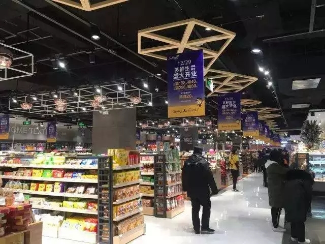 2017年4月,苏宁在徐州推出了全国首家“SU FRESH苏鲜生”精品超市,主营蔬果、牛奶、肉类、海鲜、鲜花等商品。与阿里的盒马鲜生类似,苏宁的苏鲜生超市也提供3公里范围内半小时闪送服务。