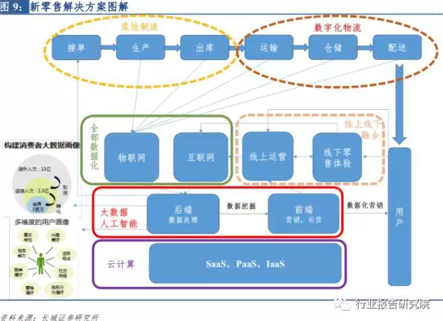 马云对“新零售”的解释只用了四个关键词,均与新技术相关:“ 线上线下的深度结合、现代物流、大数据、云计算。”