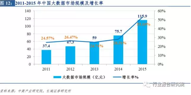据中商产业研究院数据,我国大数据行业市场规模增速明显,2015年中国大数据市场规模为115.9亿元,增速达53.10%。