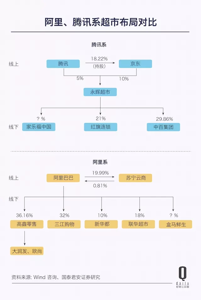 “反正业界都在这么传。”招商证券零售行业分析师王凌霄告诉《好奇心日报》,“其实家乐福很早就想卖了。可能接触了阿里也接触了腾讯,价格上有一些分歧。”《财经》杂志也声称掌握了独家消息:在和腾讯谈判前,家乐福曾计划将中国业务整体出售给阿里,但阿里选择了入股拥有大润发和欧尚的高鑫零售,家乐福迅速启动和腾讯的谈判,并在两个月内就达成了交易。