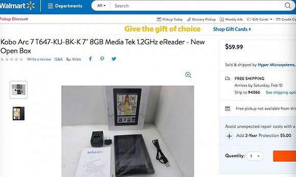 已经在沃尔玛售卖的Kobo电子书
