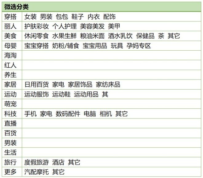 其次,微选的分类混乱。微选将平台上70000家微选好店分为:穿搭、丽人、美食、母婴 、海淘等多个板块。在此前的媒体报道中,还出现了“两性”的分类。微选板块分类混乱,而如果每一板块中详细内容列举出来,会发现问题严重的多。