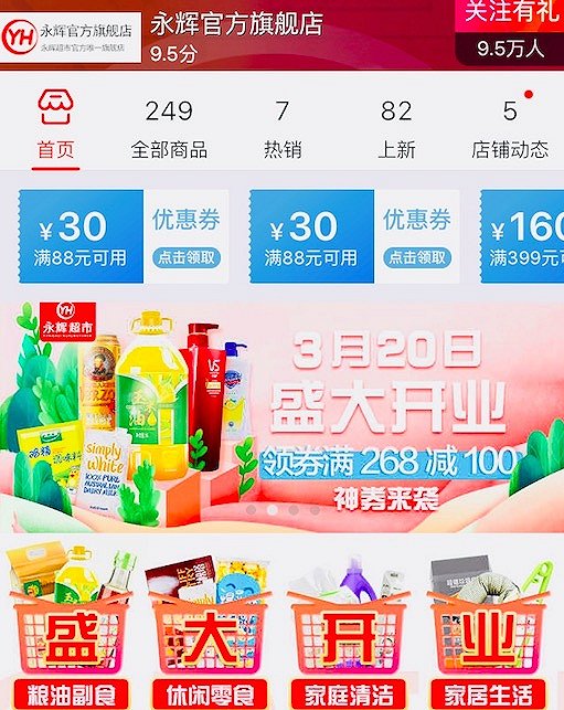 3月20日,永辉超市在其官方微信号宣布,永辉京东旗舰店正式开业,并准备了一系列促销优惠活动。这是继永辉在两年前入驻京东到家之后,首次与京东展开更深一步的合作。