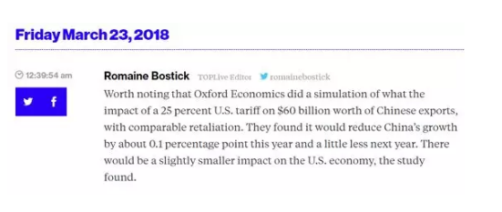 牛津经济学智库曾作出沙盘推演,如果特朗普针对600亿美元的中国商品征收25%的关税的话,中国经济增长率今年可能下降0.1%个百分点,但美国经济自身受到的伤害则要更大,可谓“伤敌八百,自损一千”。