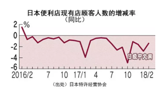 据日本特许经营协会消息,今年 2 月日本七大连锁便利店进店人数同比下降 1.4%,是自 2016 年 3 月起连续 24 个月同比下降。
