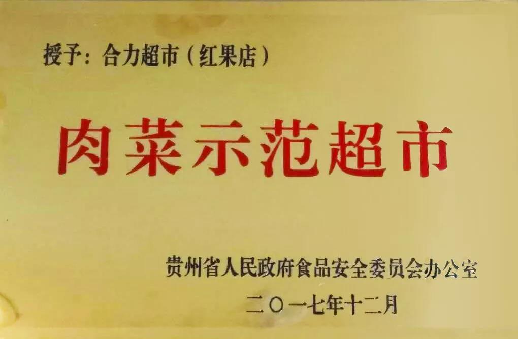 合力超市(红果店)荣获“肉菜示范超市”