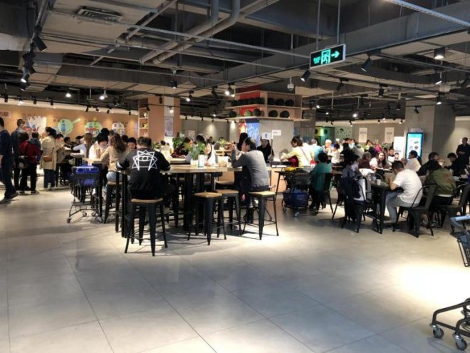 整体而言,成都人对盒马鲜生的感觉还是一家小超市,不过每到饭点会发现就餐区的人气远远高于超市购物区。