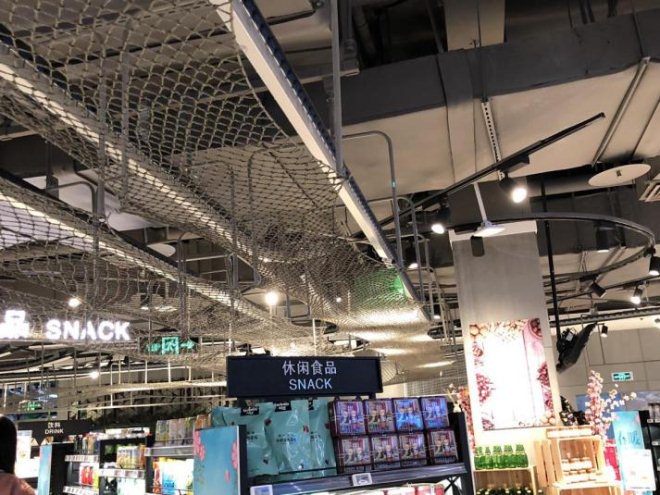 更有趣的是,当我们推着购物车从永辉超市想进入超级物种区域时,被工作人员拦住,表示只有去二楼收银台结账后,才能再下来进入到超级物种购物或者就餐。仔细一想,确实一楼的超级物种没有设置超市商品的收银台,随便出入还真不合适。