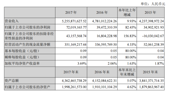 4月19日晚间,三全食品发布2017年度报告,报告期内,公司实现营业收入52.6亿元,同比增长9.93%;营业成本34.7亿元,同比增加11.99%;营业利润0.98亿元,同比增加1,319.58%;归属于上市公司股东的净利润0.72亿元,同比增加82.45%。