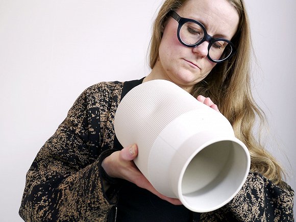 这款产品是由湖南的华联瓷业集团的工人一个个手工捏出来的,并刻意留下人工的痕迹。“在陶瓷生产中,人是永远在背后的,我们想将背后的人高亮出来,想给她们自由,让它们参与到这个过程,让他们成为故事的一部分。”花瓶的设计师Hanna-Kaarina Heikkil?对界面新闻称,她带着一副超大的黑框眼镜,谈到这款产品时总是自信满满。