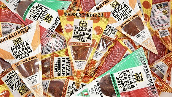它来自一个叫Epic Meal Time的YouTube频道,这个在放送各种疯狂大尺寸产品挑战的频道,生产的第一款自主品牌产品倒是相当矜持——把披萨做成如牛肉干那样的披萨干Pizza In A Bag,既满足垃圾食品爱好者,又减少发胖烦恼。