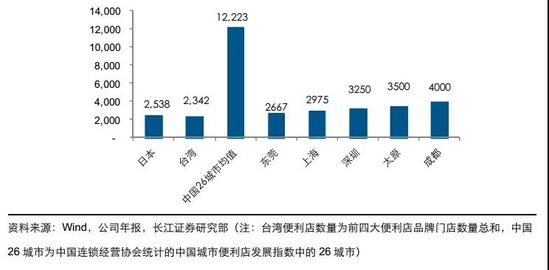 从单店辐射人数来看,国内目前便利店的渗透率的确较低。据中国连锁经营协会统计,国内26个重点城市单个便利店辐射人数为1.2万人,同期日本和台湾这一数值约为2500人。除广东、上海两地便利店密度达到了白热化竞争阶段以外,其他城市便利店市场普遍处在起步和初期成长阶段。