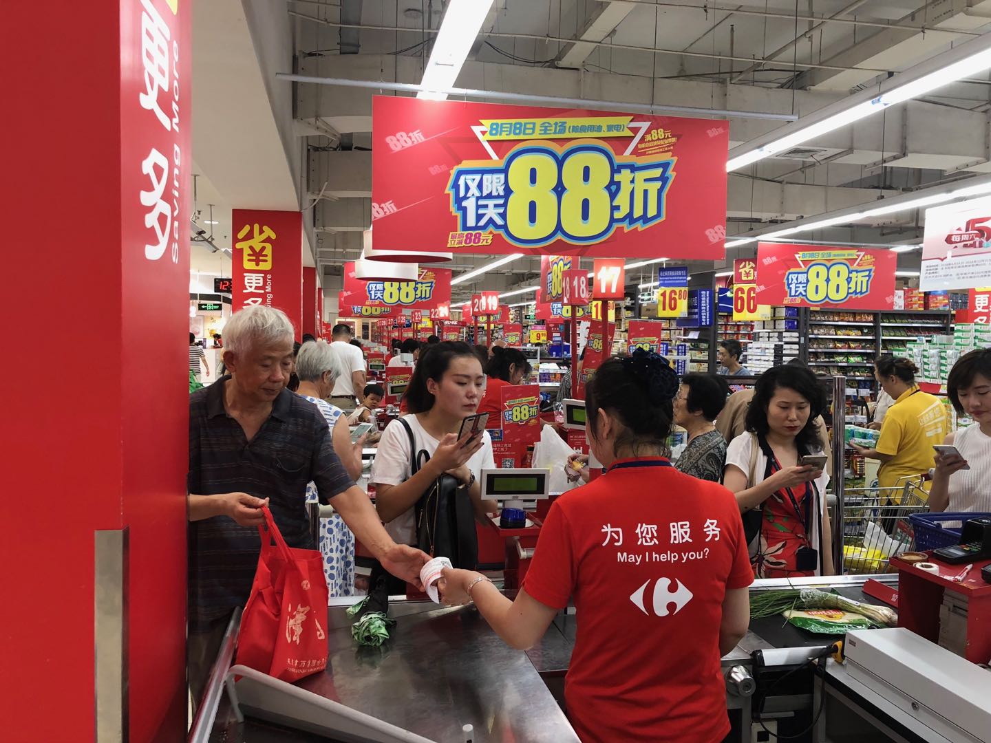 在刚刚过去的8月8日,家乐福联手美团打造8.8闪购节,上海徐汇店开通24小时配送业务,借助朋友圈广告、公众号等多维度推广手段。同时,家乐福联合微信支付开启88智慧生活日,发放大量优惠券,打造新一轮的销售高潮。