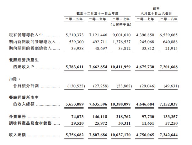 上周更新的招股书显示,海底捞在今年上半年仍然保持着营收高增长。海底捞2018年上半年营收为73.42亿元,同比增54.4%。实现净利润6.47亿元,同比增17%。主要营收来自于餐厅经营,占比达到97.4%。
