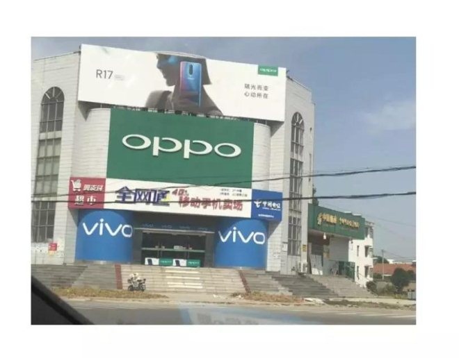 VIVO和OPPO的成功是有理由的,是复制难度极高的。他们的下沉能力和中国邮政到了一个水平线。下图摄于一个江苏北部小镇。这个镇的“商业街”(如果可以称为商业街的话),一纵一横不到100米。OPPO和VIVO基本占住必经之处的核心焦点。