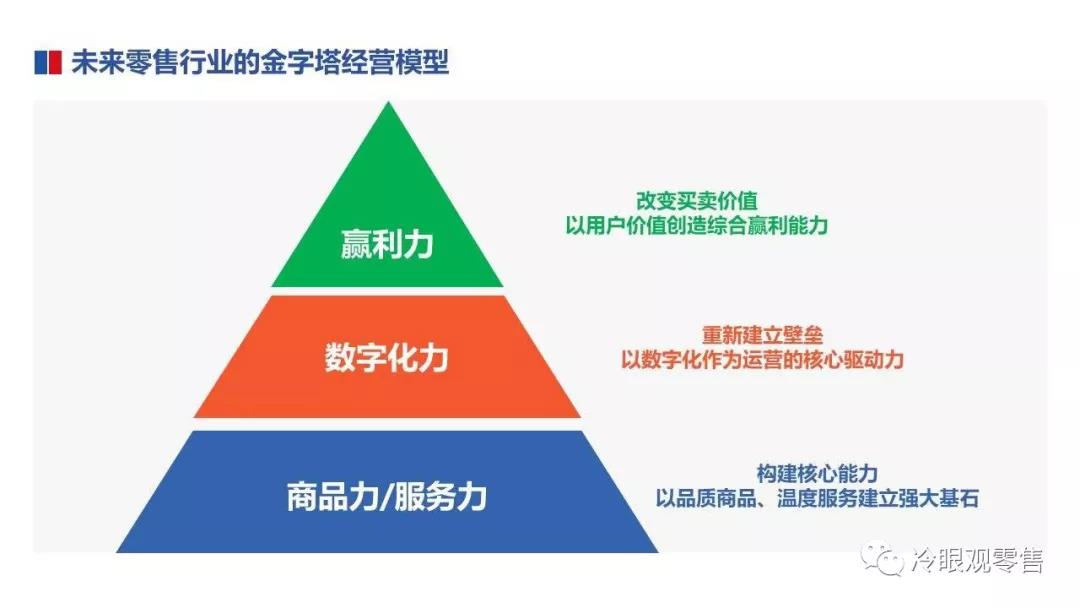 - 于零售而言,传统零售业:以商品为中心、密集劳动力、价格营销、位置为王的时代阶段很快就要划上句号了,还没有意识到这一点的企业,都差不多垂死挣扎了。