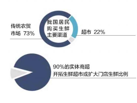 未来,提升生鲜的比重将会是超市在商业品类上的一大趋势。南都调研的50家实体零售企业的数据显示,目前,有90%的实体商超开拓生鲜超市或扩大现有门店中的生鲜比例。