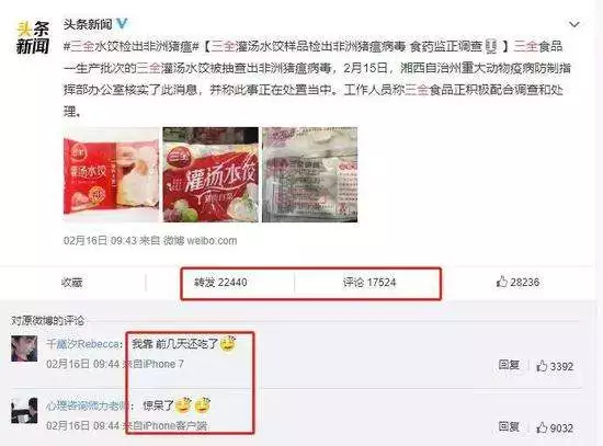 三全等企业作为冷冻食品界的大佬,却也出现了食品安全问题,事件一出便瞬间挤上热门新闻,网友纷纷表示:食品安全任重道远啊!