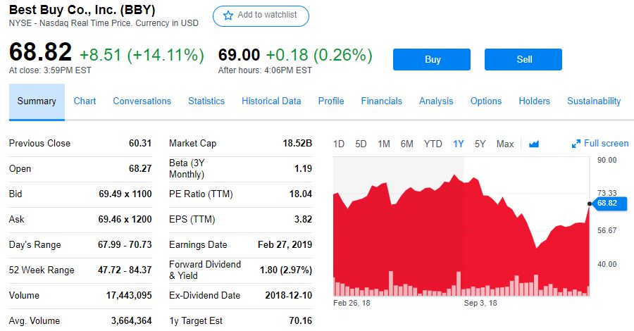 整体来说,华尔街非常欢迎这份财报,才导致百思买股价大涨,几乎抹去了过去12个月的累计跌幅16%。