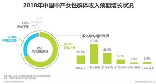 目前中国整体经济环境呈稳中向好态势,单就中产女性居民群体来看,收入预期逐年上升,直接驱使中产女性对更高层次消费及更高品质生活的追求。
