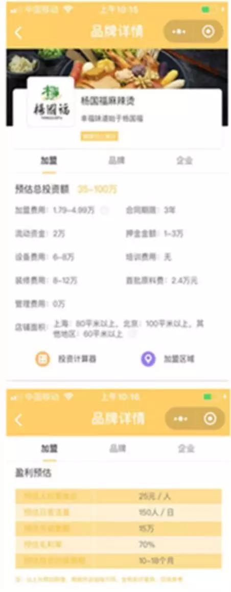 虽然目前美菜网的餐饮加盟业务还没有成型的产品上线,但或许从其他做餐饮加盟的竞品可对其窥探一二。亿邦动力了解到,就在本月初,餐饮连锁加盟平台“加盟家”获得500万元的天使轮融资。加盟家定位于品牌加盟双向严选平台,一手对接要发展加盟业务的品牌,一手对接准备加盟的商户。