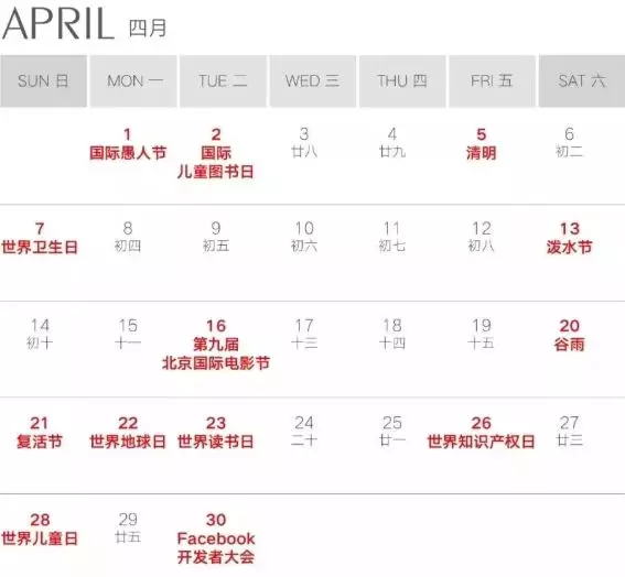 一、节气营销 清明节(4月5日4月7日) 清明节又叫踏青节,在仲春与暮春之交,与端午节、春节、中秋节并称为我国四大传统节日。2006年批准列入第一批国家级非物质文化遗产名录。清明期间,天气回暖,又正逢小长假,人们会走到户外,进行踏青赏春。 活动时间:...