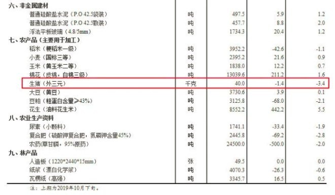 11月上旬生猪价格环比下跌1.4元至40元每公斤。 11月14日,统计局公布《2019年11月上旬流通领域重要生产资料市场价格变动情况》。 据对24个省(区、市)流通领域9大类50种重要生产资料市场价格的监测显示,2019年11月上旬与10月下旬相比,17种产品价格上涨,30...