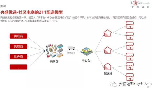 与上文两种模式有所不同,兴盛优选是农村包围城市战略,以省会城市为圆心,深度布局地级市、县、乡镇。另外,兴盛优选是采用“拉式”的模式,即消费者先下单,上游才会开始配货。据悉,兴盛优选的物流主要分为共享仓、中心仓、配送站、门店四个层级。