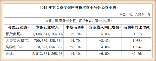 财报显示,2019年上半年,银座股份先后在临沂、泰安新开2家门店,购物中心输出管理项目2个(济南万虹广场和临沭鲁商城市广场),关闭临朐华兴东城店、临朐华兴纸坊店及济南明湖店3家门店。