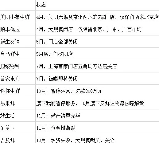 根据腾讯新闻《潜望》的粗略统计,2019年,除了鲜生友请、妙生活、呆萝卜等创业公司先后陷入经营泥淖,巨头及巨头加持的企业也遭遇了不同程度的麻烦。