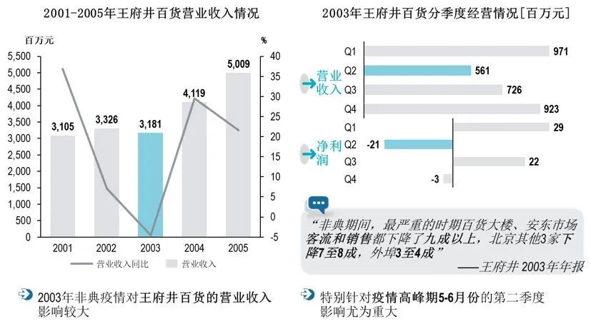 本次疫情对零售企业,特别是实体零售企业的业务规模影响程度将高于非典。如前所述,与“非典”疫情不同,本次疫情期间多地的防控措施堪比“非典”疫情期间的主要疫区(广东和北京)。参考2003年疫情对重疫区(北京)企业营业收入和净利润的影响,本次疫情对零售行业整体的收入和利润的影响大过以往。