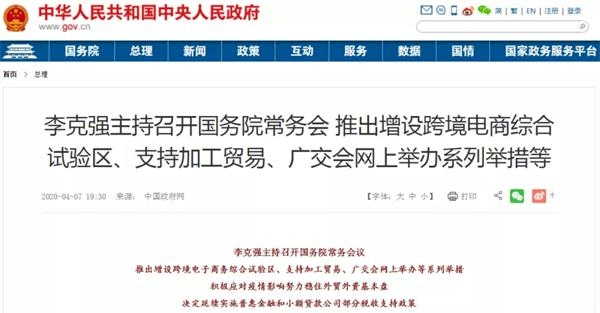 龙商网消息:国务院常务会议指出,当前传统外贸受到疫情较大冲击,为更大发挥跨境电商优势,以新业态助力外贸克难前行,会议决定增设46个跨境电商综合试验区。推广促进跨境电商发展的有效做法,实行对综试区跨境电商零售出口货物按规定免征增值税和消费税、企业所得税核定征收等支持政策,研究将具备条件的综试区所在城市纳入跨境电商零售进口试点范围。