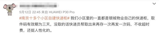 物业自建快递柜也获得网友的支持。有微博网友表示,“几大地产物业公司自建小区快递柜,走起来”。还有网友也表示,自己所在的小区一直都是物业自建的快递柜,取件码有效期为三天,没取的话快递员帮取出来再存一次再发一次码,不收超时费,很人性化。