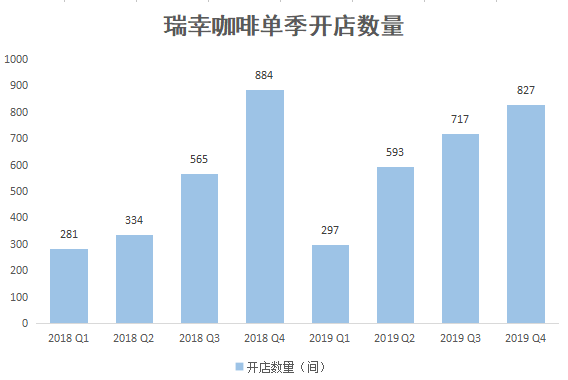 今年1月8日,瑞幸咖啡前CEO钱治亚在战略发布会上表示,截至2019年底,瑞幸咖啡直营门店数达到4507家,成为中国最大的咖啡连锁品牌。这与瑞幸官网数据一致。按此推算,2019年Q4,瑞幸单季开店数为827家。