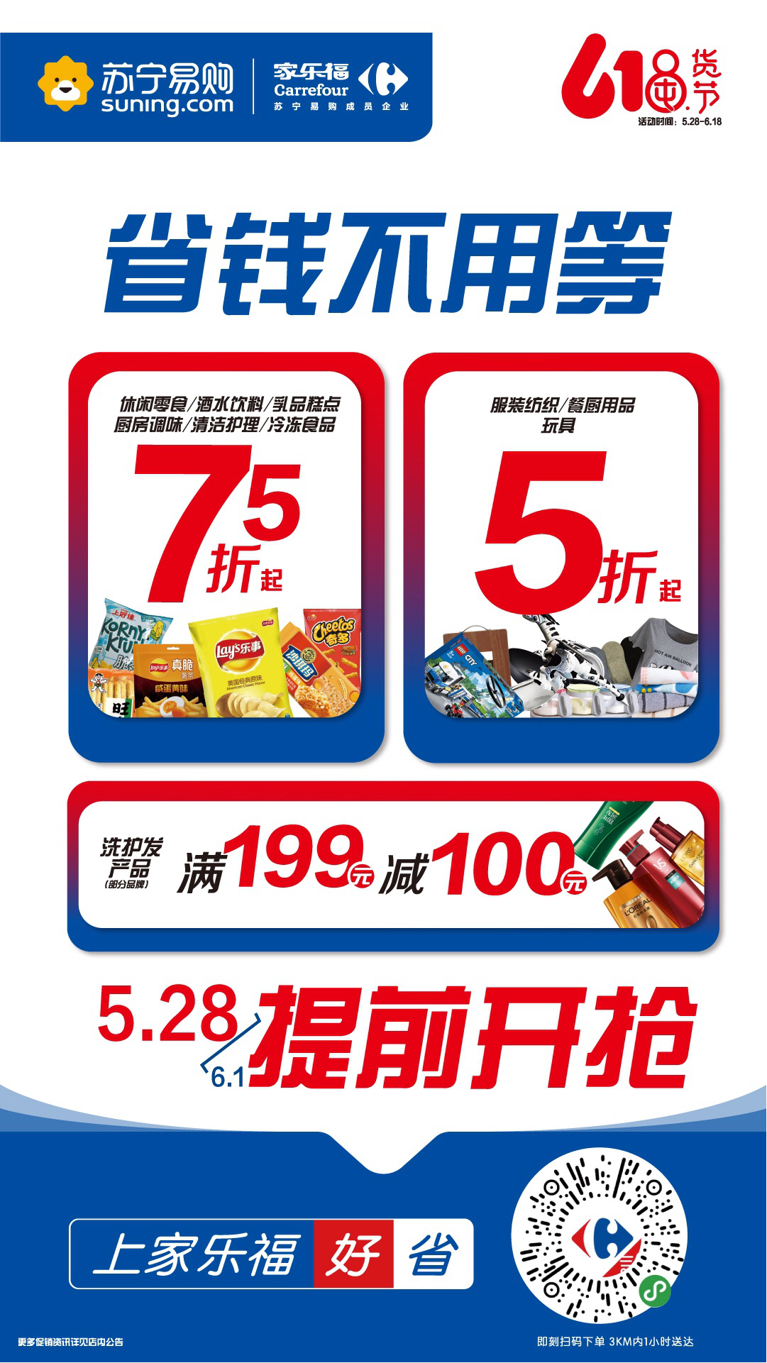 作为苏宁阵营中的排头兵、苏宁大快消产业的核心部分,家乐福率先出战。为了给消费者提供充足时间选择心仪的商品,家乐福618囤货节即将拉开帷幕,让消费者尽享“618 省钱不用等”的升级购物体验。