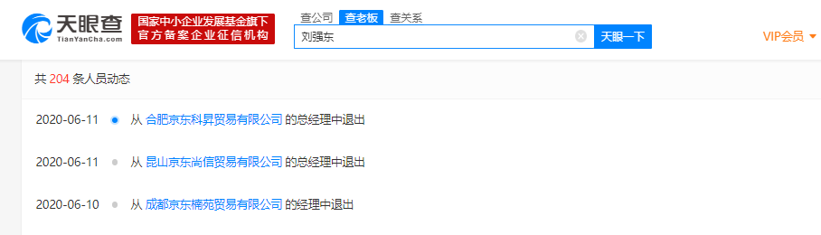 天眼查数据显示,近日,刘强东卸任京东旗下3家贸易公司高管职务,包括成都京东楠苑贸易有限公司经理、昆山京东尚信贸易有限公司总经理、合肥京东科昇贸易有限公司总经理。此外,卸任上述三家公司职位的不止刘强东一个人,还有张雱,张雱卸任了上述3家公司的法定代表人。天眼查数据显示,6月以来,刘强东已退出多家公司高管职位。