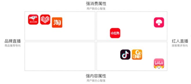 如矩阵所展示,虽然都是为用户提供边看边买的购物环境,但因为平台属性不同,各个玩家自然各有侧重。
